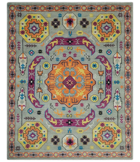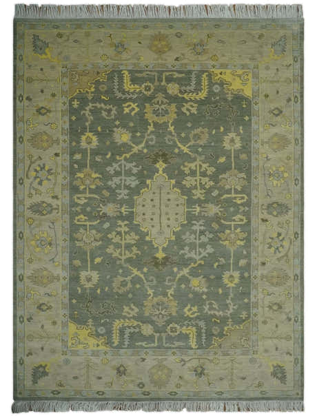 Charcoal, Olive and Mustard Hand knotted Oriental Oushak Custom Made wool Area Rug