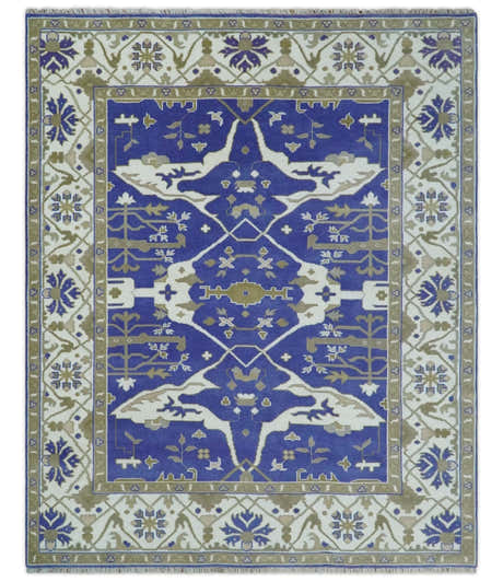 Custom Made Violet, Ivory and Olive Traditional Hand knotted Oriental Oushak wool Area Rug
