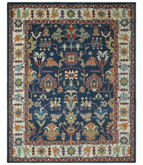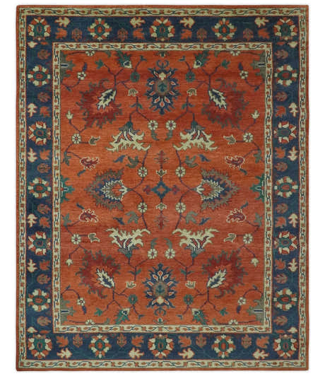Rust, Blue and Beige Hand Knotted Oriental Oushak Multi Size wool Area Rug
