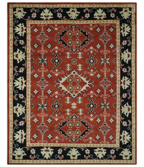 Rust, Black and Beige Traditional Oriental Hand Knotted Custom Made Wool Area Rug