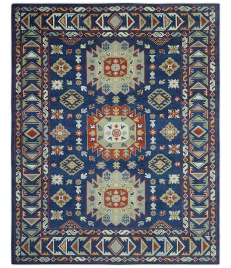 Custom Made Traditional Rust, Ivory and Blue Heriz Medallion Wool Area Rug
