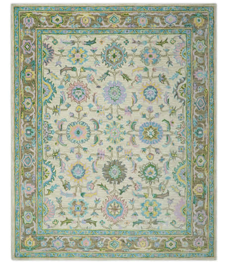 Hand Knotted Teal, Ivory and Beige Traditional Oriental Oushak Multi Size wool rug