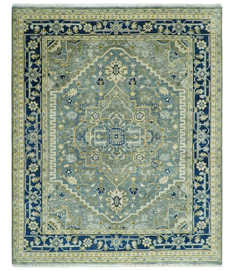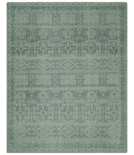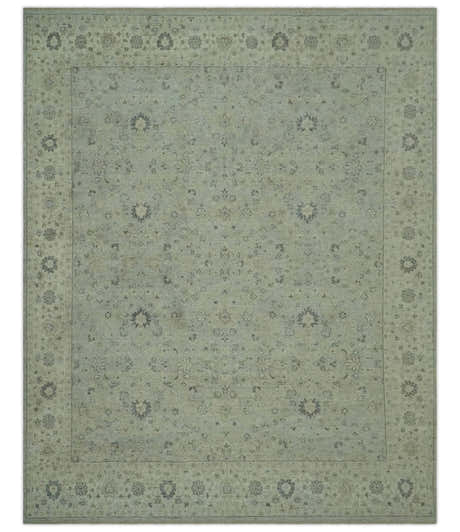 Antique design Gray, Olive and Blue Traditional Hand Knotted Custom Made wool Rug