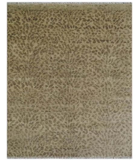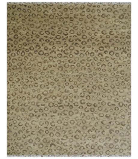 Modern leopard Design Hand knotted Camel and Taupe Custom Made wool area rug