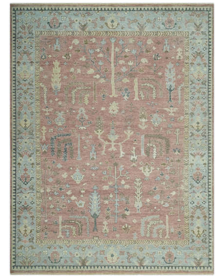 Custom Made Pink And Rust Traditional Design Hand Knotted wool rug