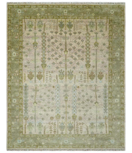 Tree of life Beige, Purple and Olive Hand Knotted Traditional Floral Custom Made wool rug