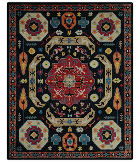 Black, Rust and Beige Traditional Oriental Hand Knotted Custom Made Wool Area Rug
