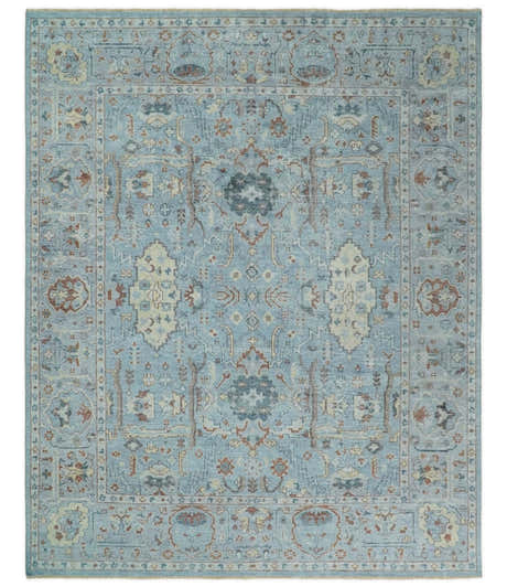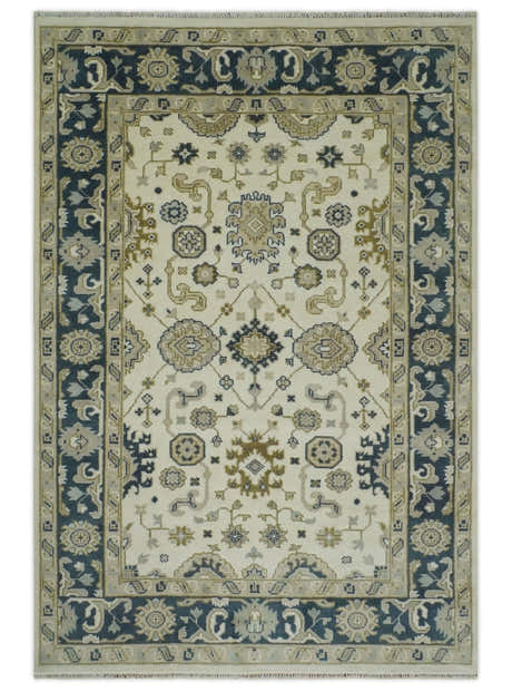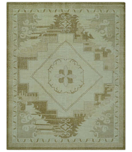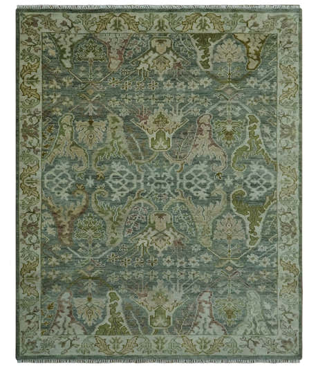 Ivory, Olive and Blue Hand Knotted Traditional Oriental Oushak Custom Made wool rug