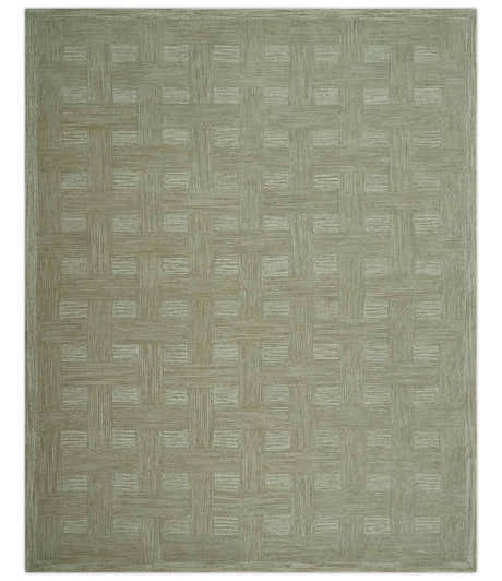 Modern Contemporarry Olive and Ivory Hand Tufted Custom Made wool rug