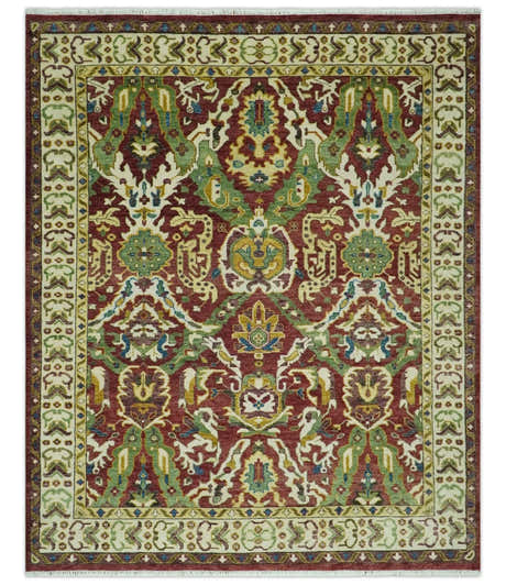Maroon and Green Hand Knotted Traditional Large Design Multi Size wool area rug