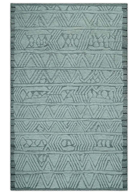 Modern Geometrical Olive and Ivory Textured Hand Tufted Multi size wool Rug