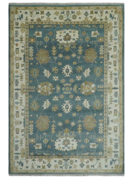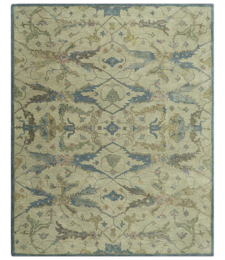 Hand Knotted Ivory, Teal and Beige Traditional Oriental Oushak Multi Size wool rug
