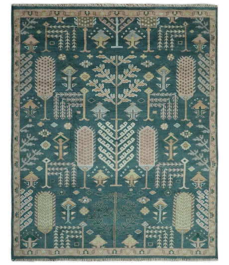 Tree of life Teal, Peach and Olive Hand Knotted Traditional Oushak Custom Made wool area Rug