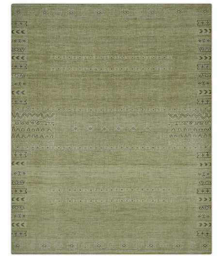 Warm Contemporary Hand Knotted Olive and Brown Design Custom Made Wool area rug
