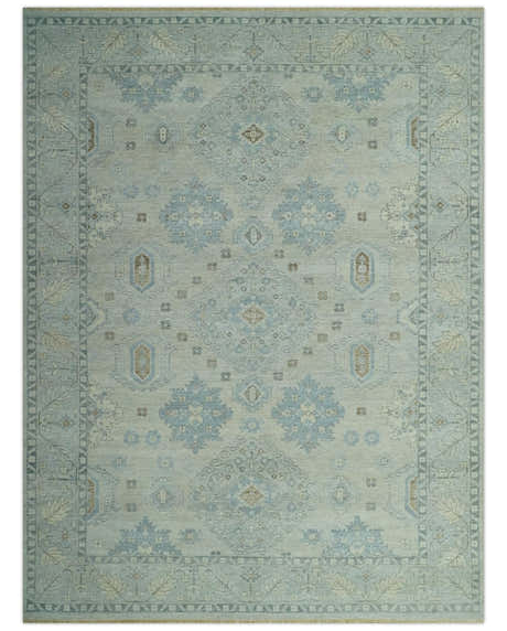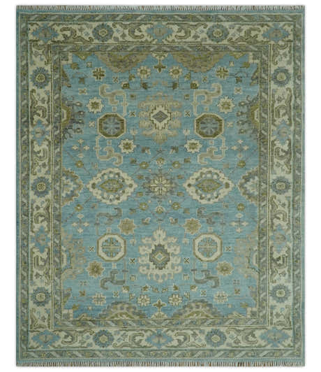 Sea Blue, Green and Ivory Hand Knotted Traditional Oushak Custom Made wool rug