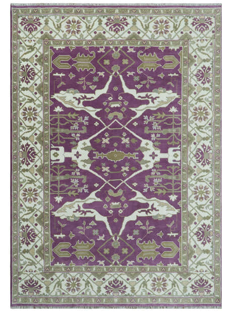 Custom Made Purple, Ivory And Beige Traditional Oushak Design Hand Knotted wool rug