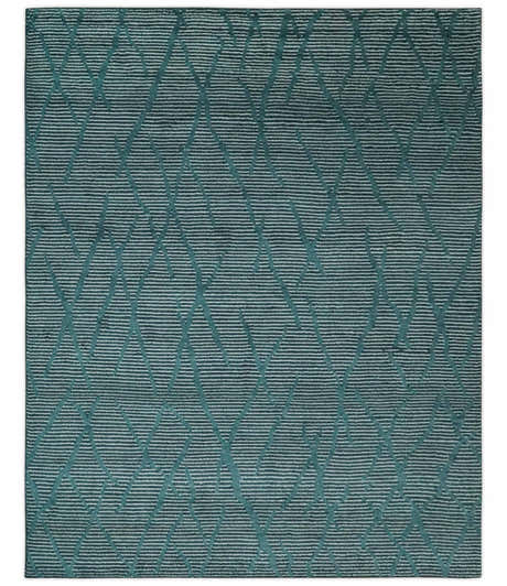 Custom Made Teal and Ivory Modern Stripes Design Hand Knotted wool Area Rug