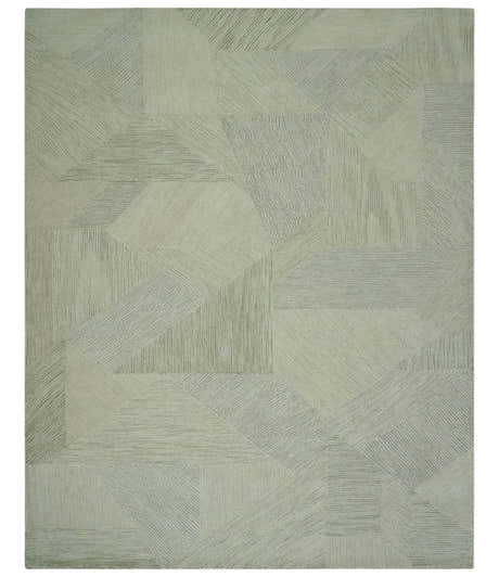 Modern Geometrical Ivory, Gray and Olive Stripes Textured Hand Tufted Custom Made rug