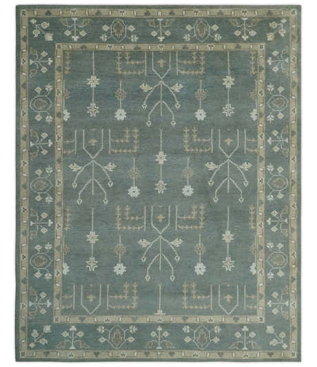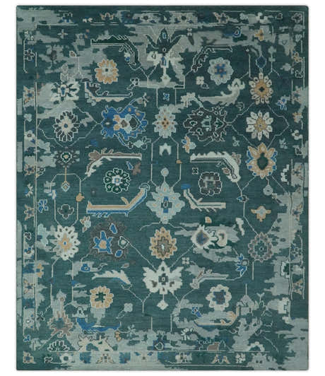 Custom Made Teal and Silver Traditional Oriental Oushak wool Area Rug