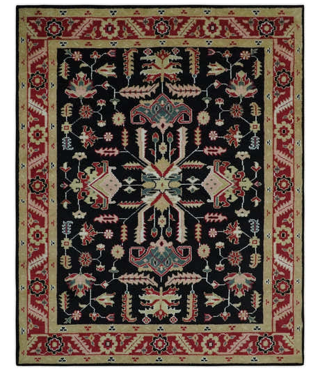 Custom Made Black, Rust, and Olive Traditional Oriental Hand Knotted Wool Area Rug