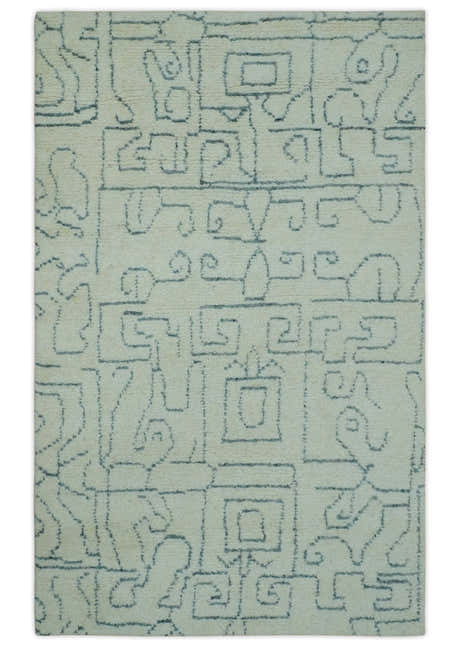 Custom Made Ivory, Beige and Gray Maze Design Hand knotted wool Area Rug