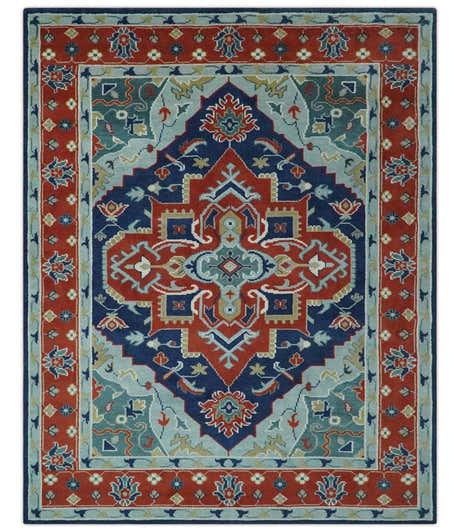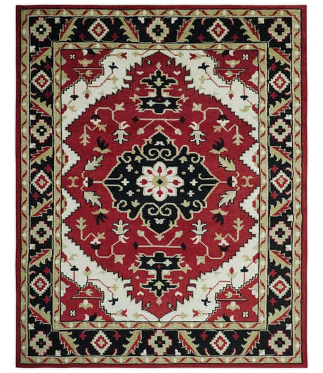 Rust, Ivory, Black and Beige Hand Knotted Traditional Heriz Multi Size wool area Rug