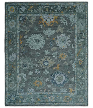 Made to Order Teal, Olive and Silver Antique Style Hand knotted Oushak wool Area Rug