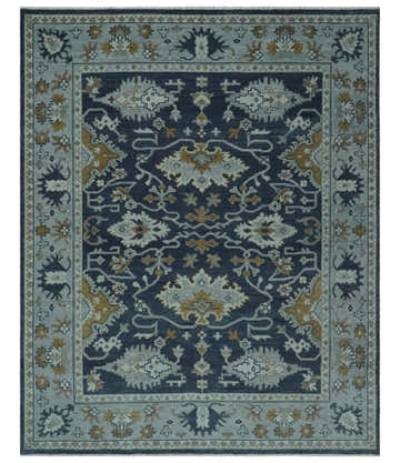Custom made Antique style Blue and Silver Hand Knotted Oushak Wool Area Rug