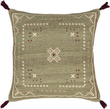 Savera Dusty Sage Organic Woven Textured Global Bohemian Wool Accent Pillow with Knotted Tassels
