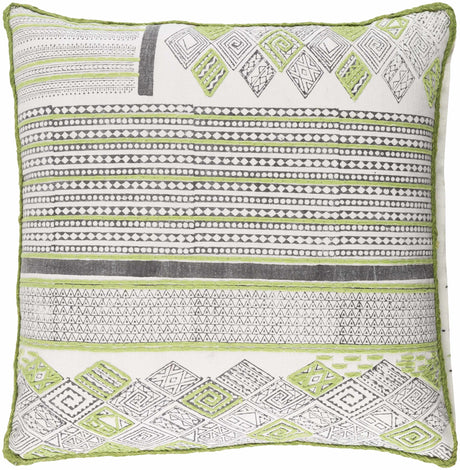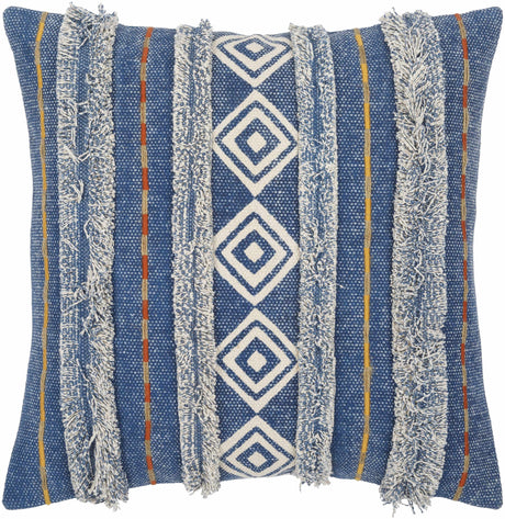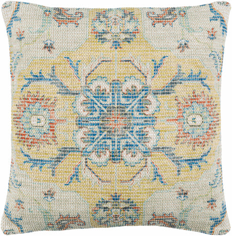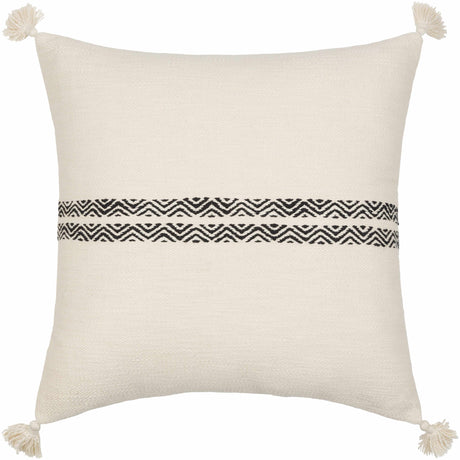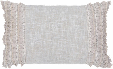 Solvani Yellow Raised Woven Linear Texture Global Bohemian Cotton Lumbar Pillow with Knotted Tassels