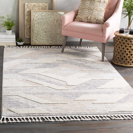 Magazine Geometric High/Low Pile Rug with Tassels - Clearance