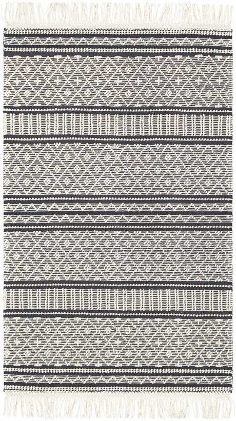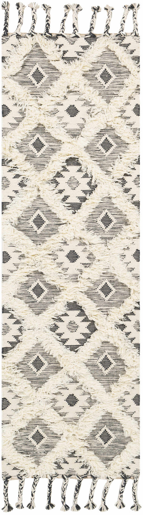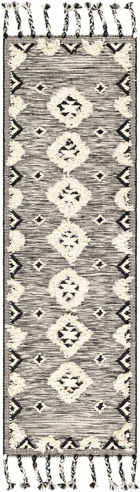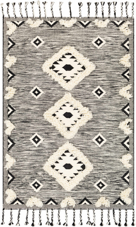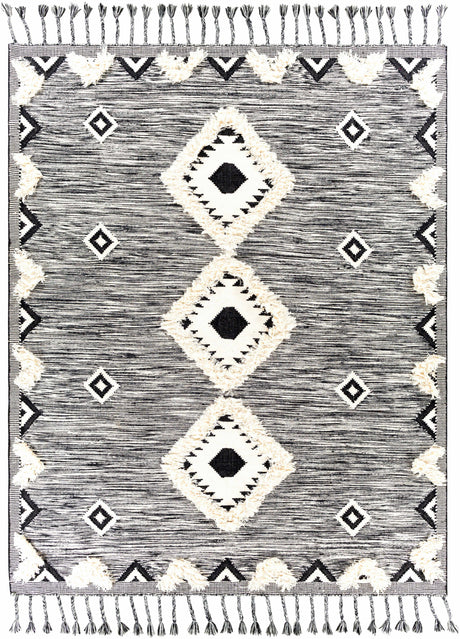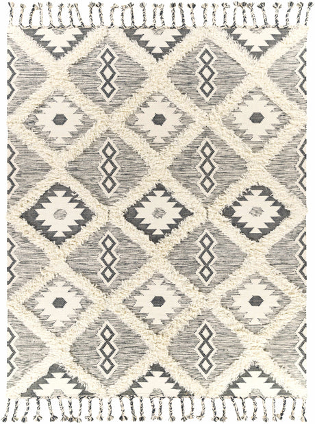 Sultan Charcoal/Beige Tribal Tassel Wool Rug - Clearance