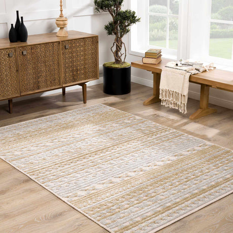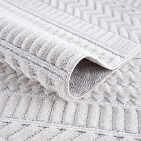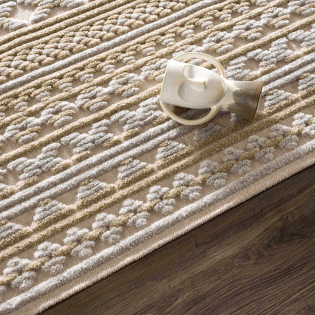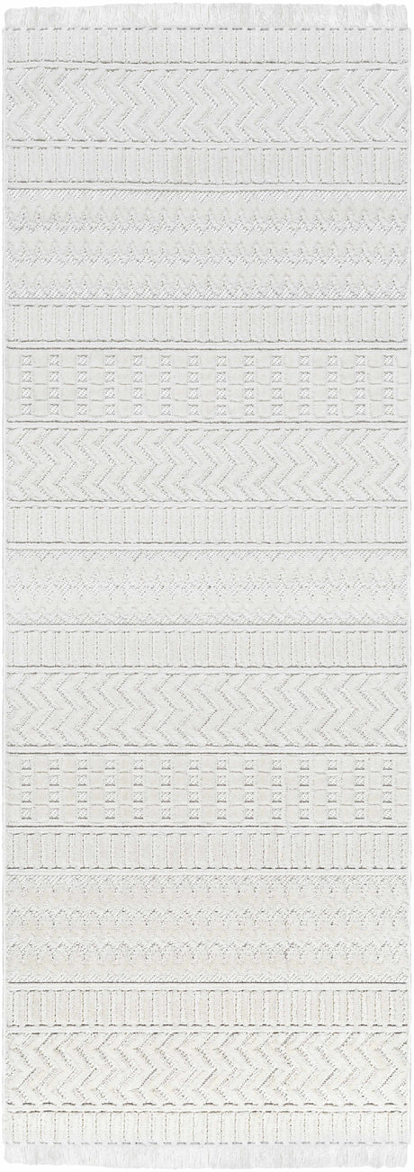 Ivory Cira Textured Trellis Fringe Area Rug - Clearance