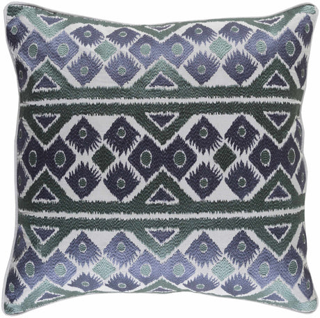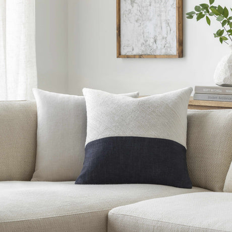 Navelle White and Navy Split Panel Mixed Pattern Modern Linen Accent Pillow