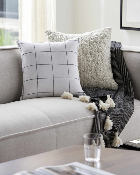 Lunet Ivory Subtle Slub Texture Cottage Linen Accent Pillow