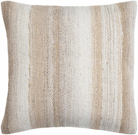 Creval Cream and Tan Woven Stripe Cottage Farmhouse Recycled PET Outdoor Accent Pillow
