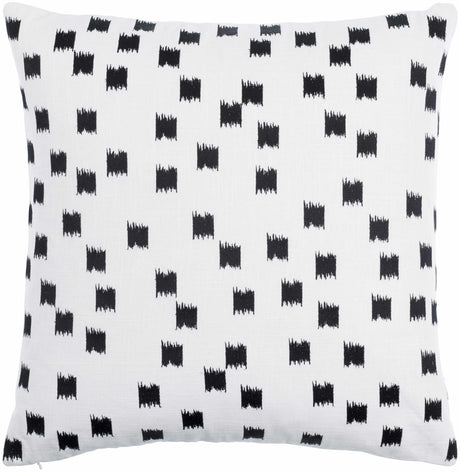 Bruska Black and Off White Brushstroke Square Pattern Modern Cotton Accent Pillow