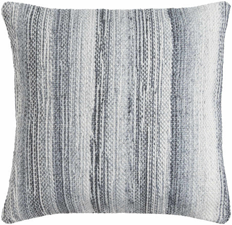 Stonel Light Gray and Off White Woven Stripe Cottage Farmhouse Recycled PET Outdoor Accent Pillow