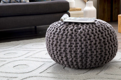 Tonanitla Natural Fiber Gray Knitted Pouf