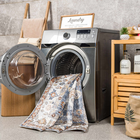 Aurum Blue & Beige Washable Area Rug - Clearance