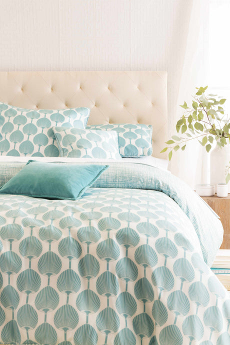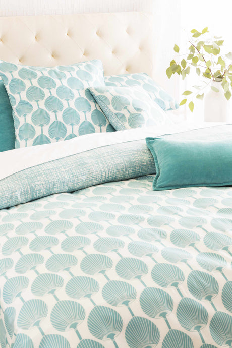 Holmfirth Pale Blue Solid Button Throw Pillow