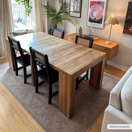 - Dining rooms benefit from jute's neutral texture that works with wood tables without competing for attention. A machine washable jute rug under your dining table provides organic foundation while handling inevitable food and wine spills. The natural look works with casual farmhouse tables and formal dining sets equally well.