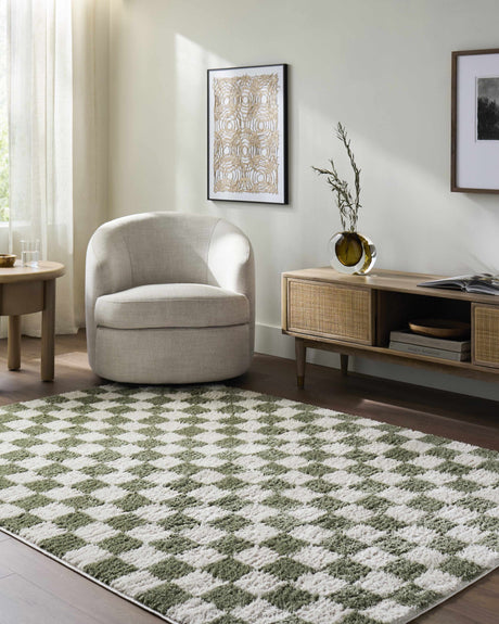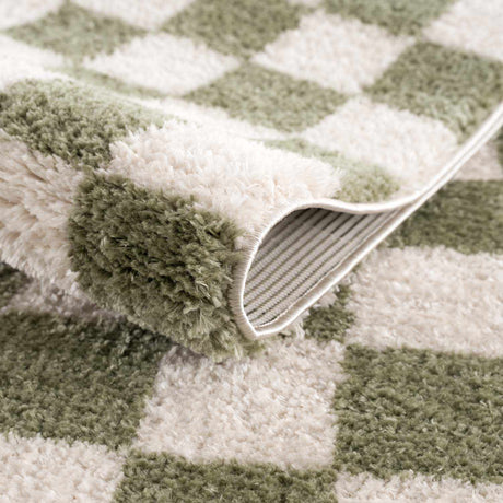 Faina Solid Green Shag Washable Area Rug - Clearance