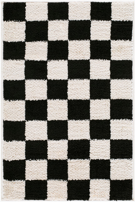 Faina Solid Black Shag Washable Area Rug - Clearance