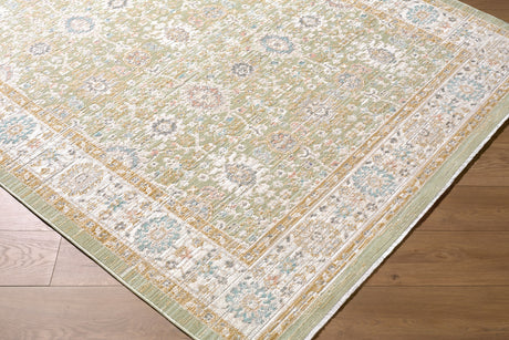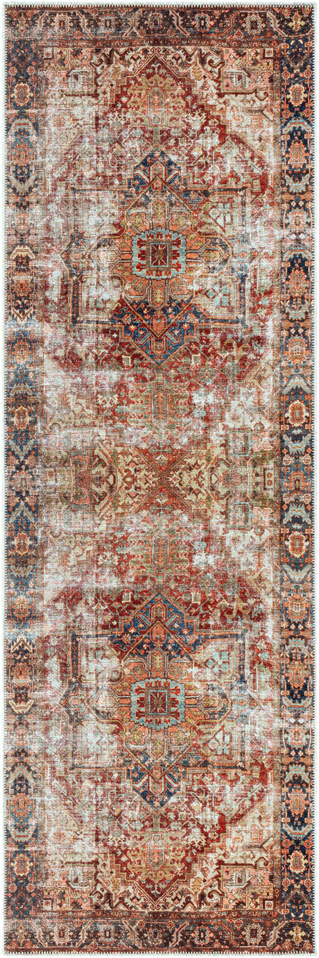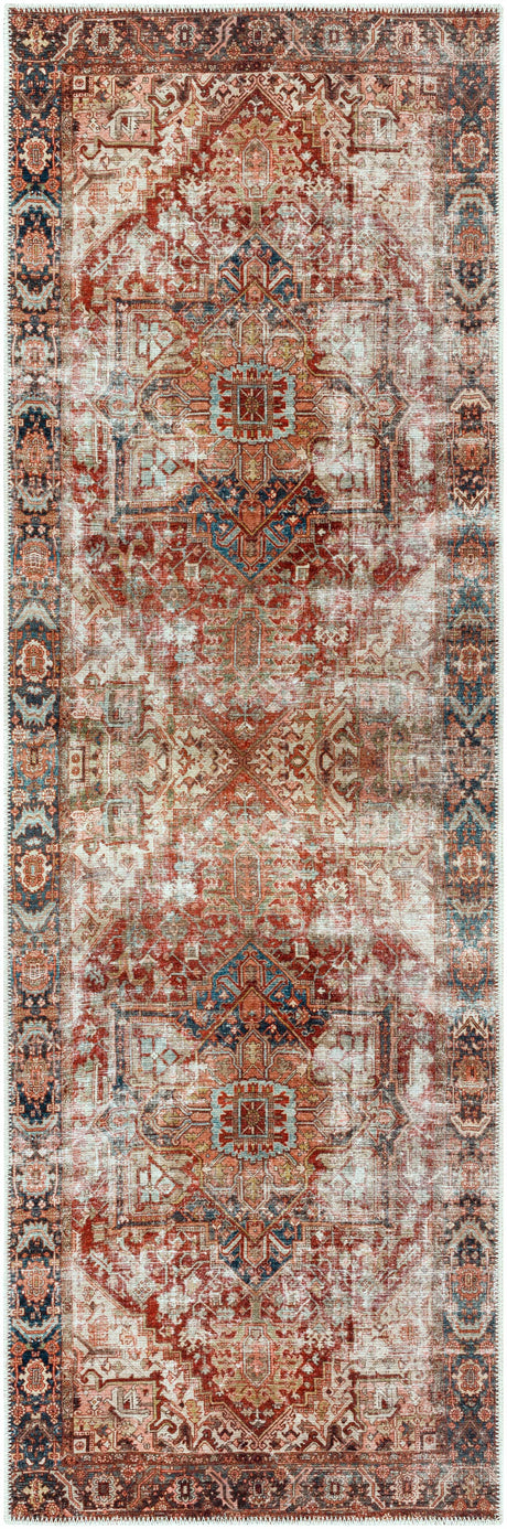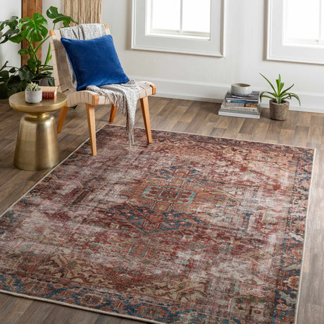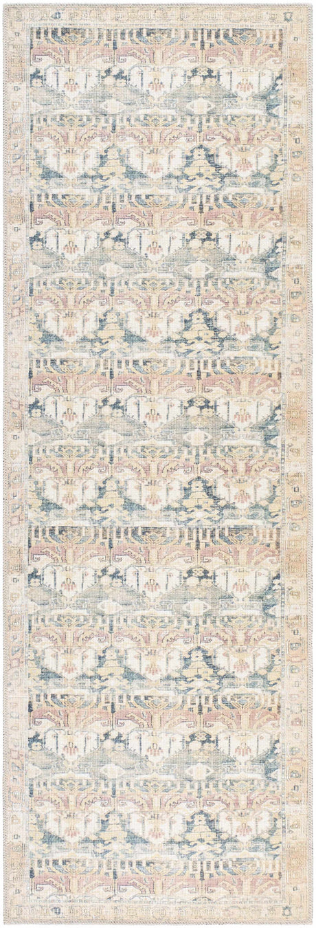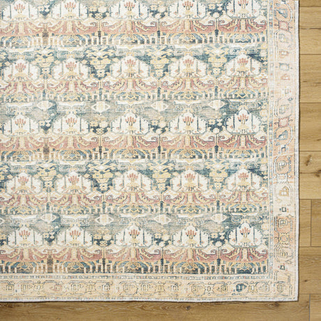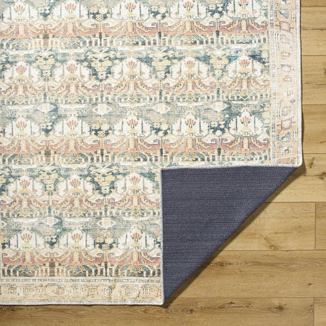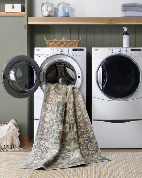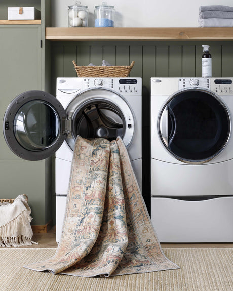 Farmhouse and cottage-style washable rugs often feature soft colors, vintage patterns, and a relaxed, cozy look. Distressed designs, faded florals, and classic stripes are common. Because they’re washable, even light colors feel safe to use in busy kitchens where spills happen often.