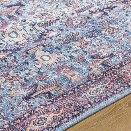 Farmhouse and cottage-style washable rugs often feature soft colors, vintage patterns, and a relaxed, cozy look. Distressed designs, faded florals, and classic stripes are common. Because they’re washable, even light colors feel safe to use in busy kitchens where spills happen often.