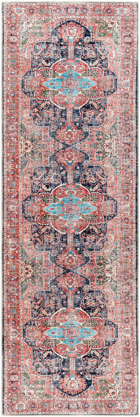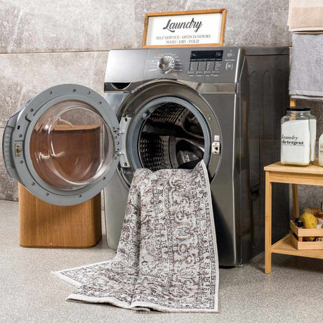 Farmhouse and cottage-style washable rugs often feature soft colors, vintage patterns, and a relaxed, cozy look. Distressed designs, faded florals, and classic stripes are common. Because they’re washable, even light colors feel safe to use in busy kitchens where spills happen often.
