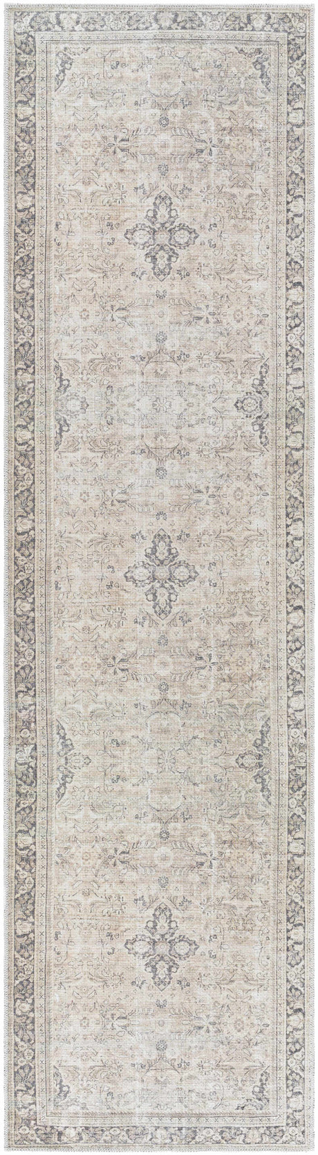 Farmhouse and cottage-style washable rugs often feature soft colors, vintage patterns, and a relaxed, cozy look. Distressed designs, faded florals, and classic stripes are common. Because they’re washable, even light colors feel safe to use in busy kitchens where spills happen often.