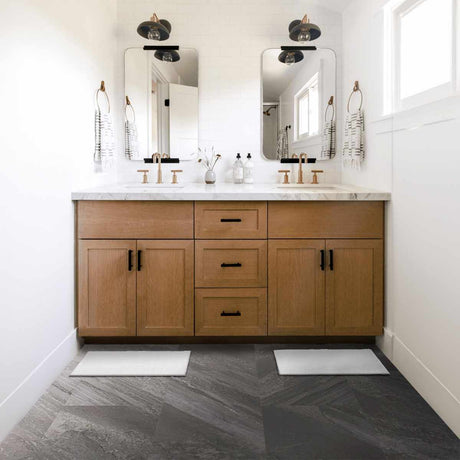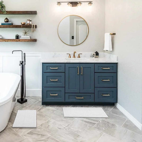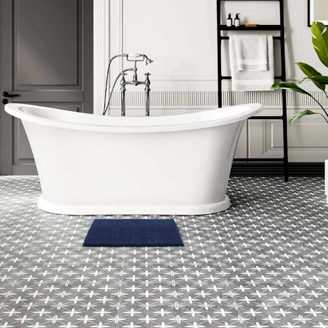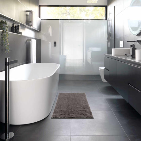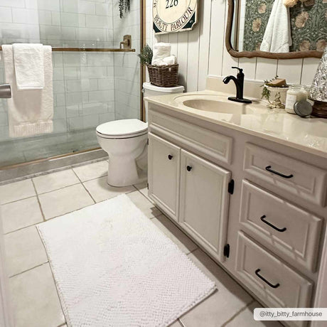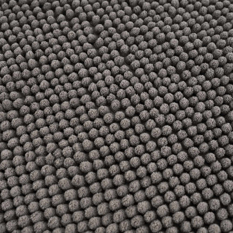 Microfiber creates extremely soft, dense pile that dries quickly and resists clumping. Its fine fibers naturally separate, helping the rug stay plush longer even with frequent use and washing.