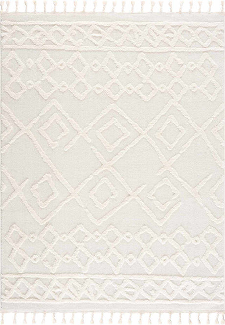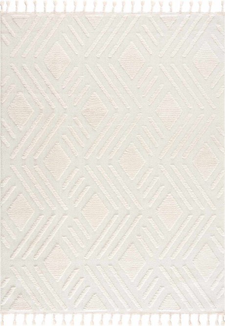 Ivory Alya 3D Medallion Fringe Area Rug - Clearance